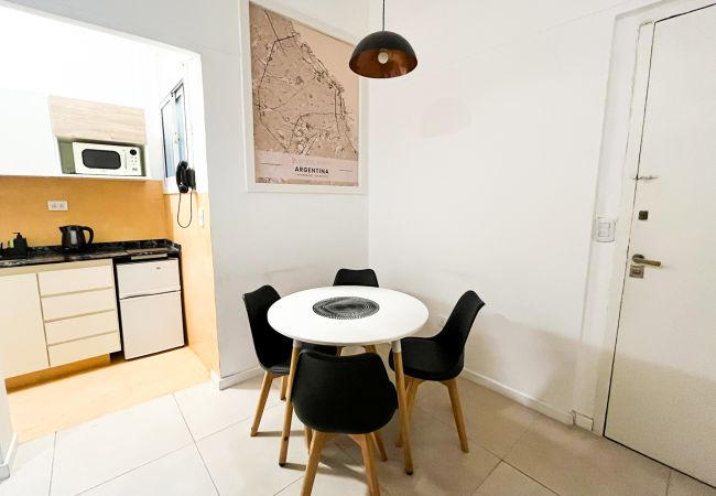 The studio in Buenos Aires has capacity for 2 people. The studio is 31 m². The accommodation is equipped with the following items: lift, internet (Wi-Fi), air-conditioned, 1 TV.In the electric open plan kitchen, refrigerator, microwave, freezer, dishes/cutlery, kitchen utensils, coffee machine, toaster and kettle are provided.